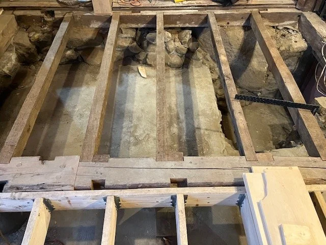 Working with Matt Diana Housewright on the stone foundation, sill and floor repairs, wall restorations and new construction, jacking floors to level, window and door installation, exterior siding, trim, etc.